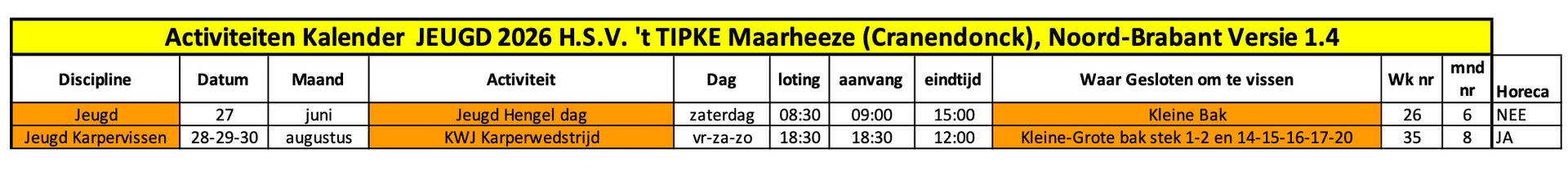 Agenda jeugdactiviteiten 2026