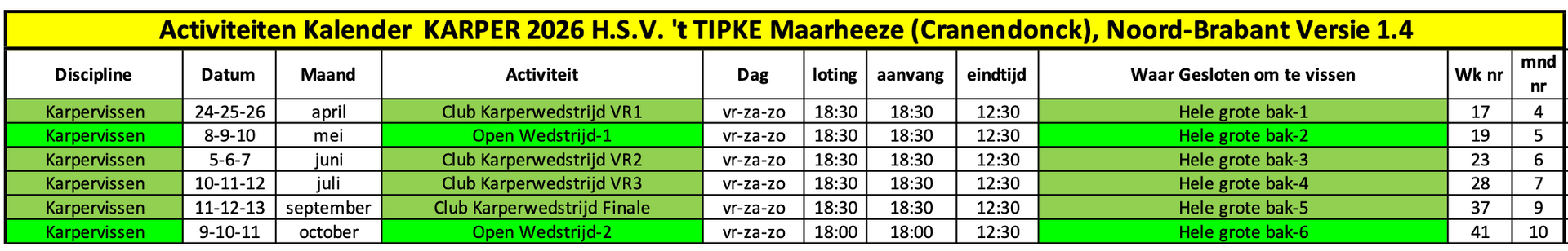 Agenda karper wedstrijden 2026
