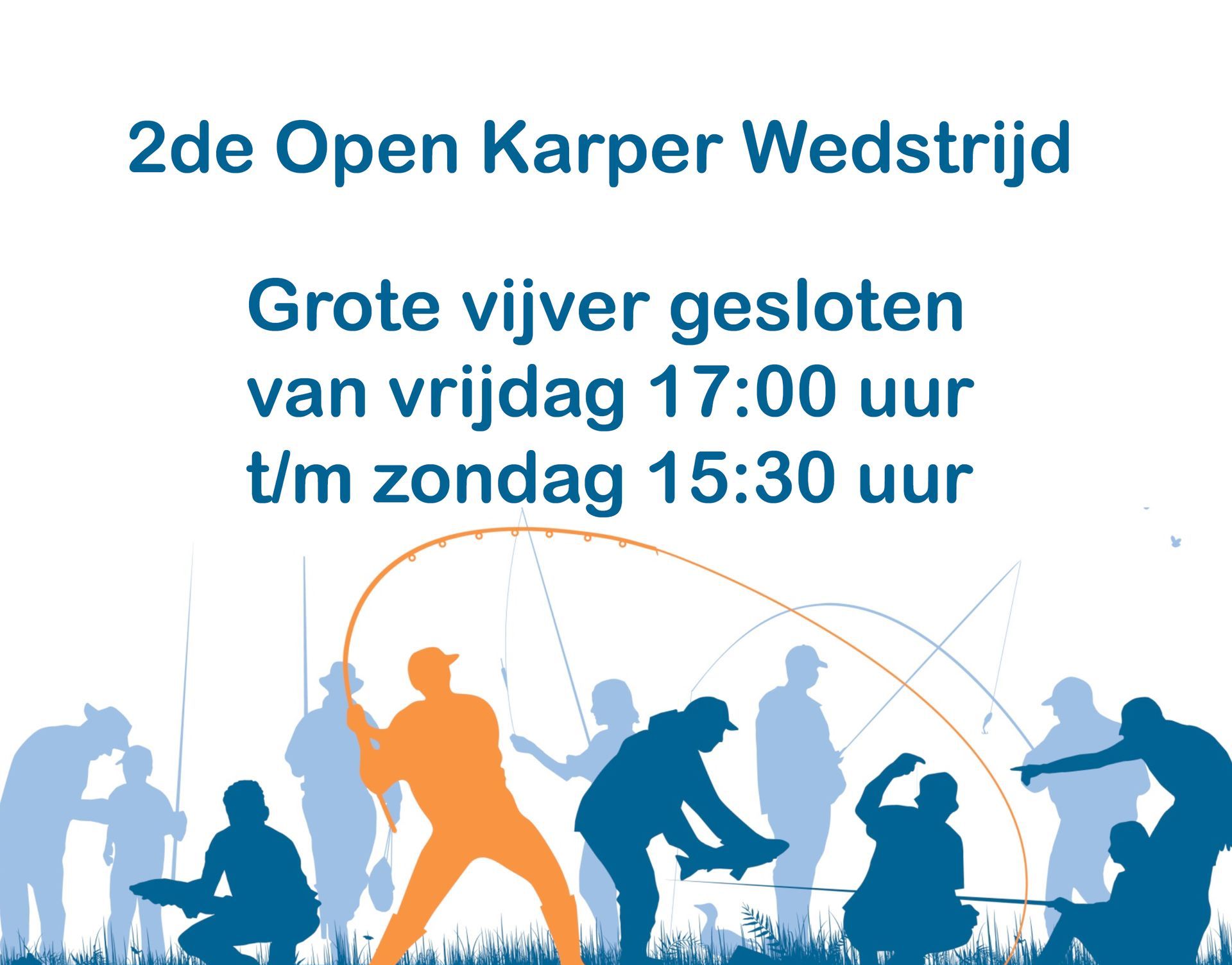 Beste leden, Tijdens het weekend van 29 t/m 31 augustus zal het KJW2025 plaatsvinden. Dit betekent dat de gehele kleine vijver en de stekken 1, 2 en 14 t/m 20 op de grote vijver gesloten zullen zijn. De stekken op de grote vijver (1, 2 en 14 t/m 20) zijn gesloten vanaf vrijdag 29 augustus 18:00 uur .. Vanaf zondag 29 september 13.00u is alles weer geopend voor iedereen. Bedankt voor jullie medewerking De Karpercommissie